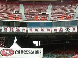 - ↑ Números retirados do San Francisco 49ers http://www.49ers.com/team/history/retired-jerseys.html Arquivado em 13 de agosto de 2012, no Wayback Machine. 15-01-2013