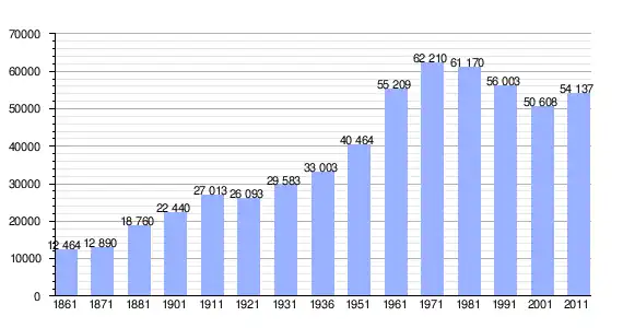 | Variação demográfica do município entre 1861 e 2011[3] |