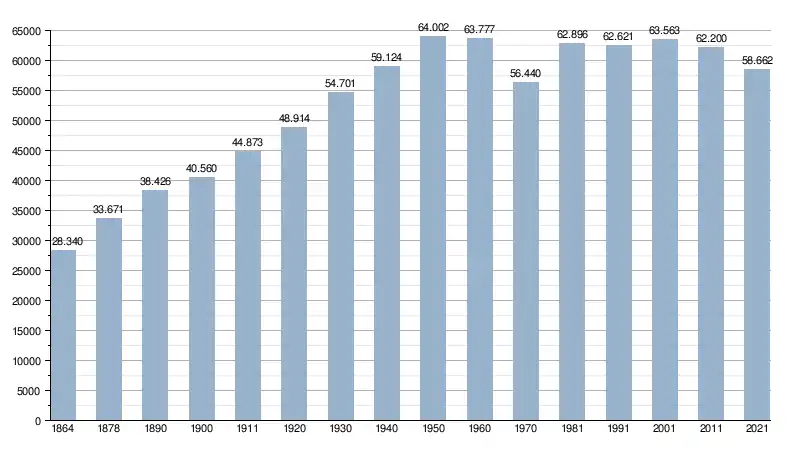 | 1864 | 1878 | 1890 | 1900 | 1911 | 1920 | 1930 | 1940 | 1950 | 1960 | 1970 | 1981 | 1991 | 2001 | 2011 | 2021 |