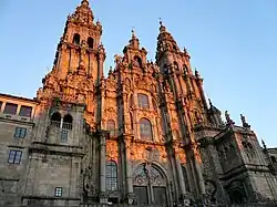 - [c] ^ Fachada principal do Mosteiro de São Martinho Pinário, na Praça da Imaculada, em frente à fachada norte (da Acibecharía) da catedral.