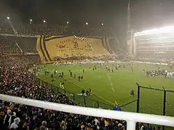 Depois de 48 anos, o Santos voltou a ser campeão da Libertadores, desta vez em 2011 após superar o Penãrol do Uruguai na final, conseguindo assim, o tricampeonato do clube na competição continental.[126] Antes dessa conquista, o Santos ainda seria campeão paulista.[127] Com a conquista da América, o Santos[128] se credenciou a disputar o Mundial de Clubes no Japão, contudo o time não conseguiu segurar a histórica equipe do Barcelona na final e ficou com o vice.[129] Em 2012,[130] veio o vigésimo Campeonato Paulista do clube e a primeira Recopa Sul-Americana.[131][132] Depois de dois vices em 2013 e 2014, o Alvinegro chegou a mais uma final no estadual, a sétima consecutiva, e conquistou o Campeonato Paulista de 2015 após superar o Palmeiras nos pênaltis,[133] o ano de 2015 terminou com o vice-campeonato da Copa do Brasil e o sétimo lugar no Campeonato Brasileiro. Em 2016, o Santos chegou no seu 22º título paulista, após chegar na sua oitava final seguida no campeonato.[134] No Campeonato Brasileiro, ficou com o vice-campeonato, melhor colocação do clube desde a edição de 2007.[135]
