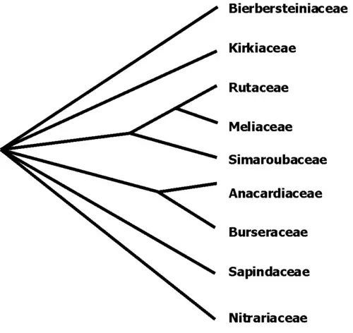 Sapindales contêm cerca de 3% da diversidade das eudicotiledôneas (Magallón et al., 1999) e mostram taxas bastante altas de diversificação (Magallón & Castillo 2009).