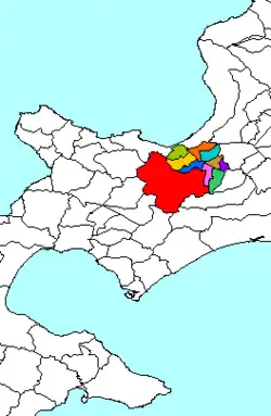 | Chūō-ku (中央区) (azul) – centro administrativo |