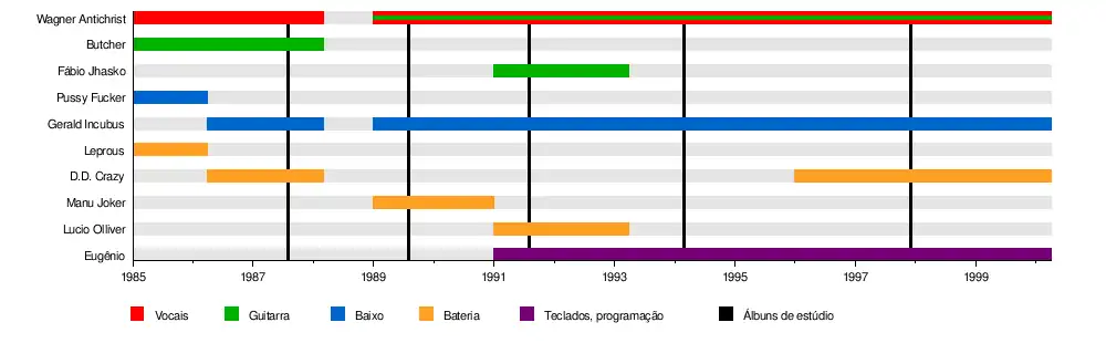 | Ex-integrantes | Eduardo "D.D. Crazy" Manu Joker Armando "Leprous" Zéder "Butcher" Lucio Olliver Juninho "Pussy Fucker" Eugênio "Dead Zone" Roberto "UFO" |