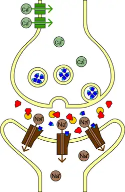 O sarin é especificamente um potente inibidor da enzima acetilcolinesterase,[9] uma proteína que degrada o neurotransmissor acetilcolina depois de liberado na fenda sináptica. Nos vertebrados, a acetilcolina é o neurotransmissor presente na junção neuromuscular, em que os sinais são transmitidos entre os neurônios do sistema nervoso central às fibras musculares. Normalmente, a acetilcolina é libertada do neurônio para estimular o músculo, após degradada pela acetilcolinesterase, permitindo assim o relaxamento do músculo. A acumulação de acetilcolina na fenda sináptica, devido à inibição da colinesterase, significa que o neurotransmissor continua a actuar sobre a fibra muscular, de modo que quaisquer impulsos nervosos são transmitidos continuamente.