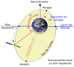 Elementos orbitais (vista paralela ao plano equatorial)
