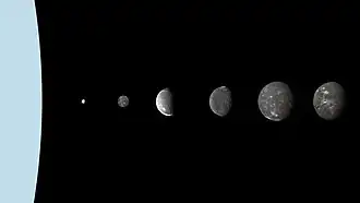 - ↑ Número se refere ao número romano atribuído a cada satélite em ordem de descoberta.[2]