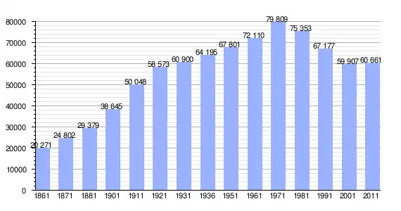 | Variação demográfica do município entre 1861 e 2011[3] |
