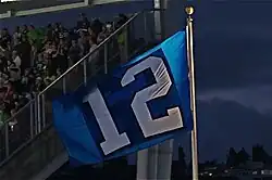 Antes do início de cada jogo em casa, os Seahawks saúdam seus torcedores levantando uma bandeira gigante com o número 12 na extremidade sul do estádio.[67] Jogadores atuais e antigos, treinadores, celebridades locais, fãs proeminentes, atletas da área de Seattle e o atual proprietário, Paul Allen, ergueram a bandeira. Mais cedo, os Seahawks aposentaram a camisa 12 em 15 de dezembro de 1984 como uma homenagem aos seus fãs. Antes da vitória no Super Bowl, os Seahawks correram para o campo sob uma gigantesca bandeira do 12º Homem.