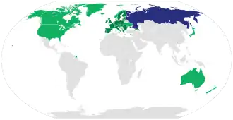 - ↑ van Dijk, ed. (2007). Encyclopedia of the Cold War. Taylor & Francis Group. ISBN 978-0-415-97515-5. LCCN 2007039661. Consultado em 18 de março de 2018. Arquivado do original em 29 de julho de 2020