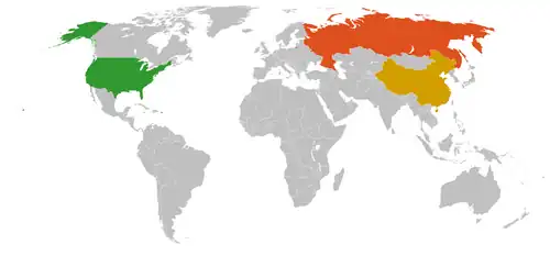 As conversas sobre uma "nova Guerra Fria" entre um bloco de países liderado pelos Estados Unidos por um lado e o suposto bloco "Pequim-Moscou", incluindo referências explícitas a ela na mídia oficial da RPC, intensificaram-se no verão de 2016 como resultado da disputa territorial no Mar da China Meridional,[29] quando a China desafiou a decisão do Tribunal Permanente de Arbitragem na disputa. Em julho de 2016, os Estados Unidos anunciaram que implantariam o Terminal High Altitude Area Defense (THAAD) na Coreia do Sul, um movimento ressentido pela China, bem como pela Rússia e pela Coreia do Norte.[30]