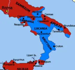 Aliados cartagineses no sul da Itália c. 213 a.C.