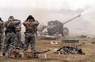 A Segunda Guerra na Chechênia (em russo: Втора́я чече́нская война́, em checheno: Шолгӏа оьрсийн-нохчийн тӏом, lit. Segunda Guerra Russo-Chechena)[13] foi um conflito bélico que ocorreu na Chechênia e nas regiões fronteiriças do Cáucaso Norte entre a Federação Russa e a separatista República Chechena da Ichkeria, durando de agosto de 1999 a abril de 2009.[14]