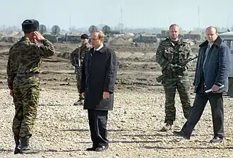 Em agosto de 1999, islamistas da Chechênia infiltraram-se no Daguestão, na Rússia. No final de setembro, ataques a bomba em edifícios residenciais ocorreram em cidades russas, matando mais de 300 pessoas. As autoridades russas rapidamente culparam os chechenos pelos ataques, embora nenhum checheno, comandante de campo ou outro, tenha assumido a responsabilidade. Durante a campanha inicial, as forças militares russas e as paramilitares chechenas pró-Rússia enfrentaram os separatistas chechenos em combate aberto e tomaram a capital chechena, Grozny, após um cerco durante o inverno que durou de dezembro de 1999 a fevereiro de 2000. A Rússia estabeleceu o controle direto sobre a Chechênia em maio de 2000, embora a resistência militante chechena em toda a região do Cáucaso Norte continuasse a infligir muitas baixas russas e a desafiar o controle político russo sobre a Chechênia por vários anos. Ambos os lados realizaram ataques contra civis. Esses ataques atraíram condenação internacional.[14]