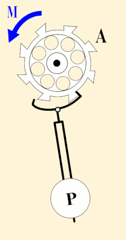 ![]() Um escape de relógio governado por um pêndulo, marcando a cada segundo | |