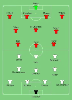 A Inglaterra venceu a Copa do Mundo FIFA de 1966, realizada em solo inglês, batendo a Alemanha Ocidental na final por 4–2.