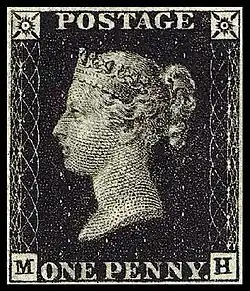 O primeiro selo postal foi o Penny Black, (one penny black), surgido na Inglaterra em 6 de maio de 1840. A ideia foi de Sir Rowland Hill, membro do Parlamento do Reino Unido, para que fosse o remetente a pagar a tarifa, pois antes da criação do selo, o destinatário é que a pagava, criando um enorme número de devoluções.