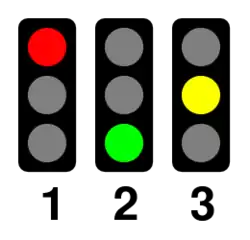 - Verde - indica que o cruzamento está livre para passagem. O sinal verde piscando tem diferentes significados dependendo da região: por exemplo, pode indicar o fim de uma "onda de sinais verdes", antecedendo um sinal amarelo contínuo. Na Colúmbia Britânica, o sinal verde piscando antecede o cruzamento com uma passagem de pedestres.