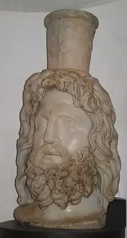 "À medida que você desce daqui até a parte baixa da cidade, está o santuário de Serápis, cujo culto os atenienses introduziram a partir de Ptolomeu." - ↑ De acordo com o comentário de sir James Frazer à Biblioteca de Pseudo-Apolodoro, 2.1.1: