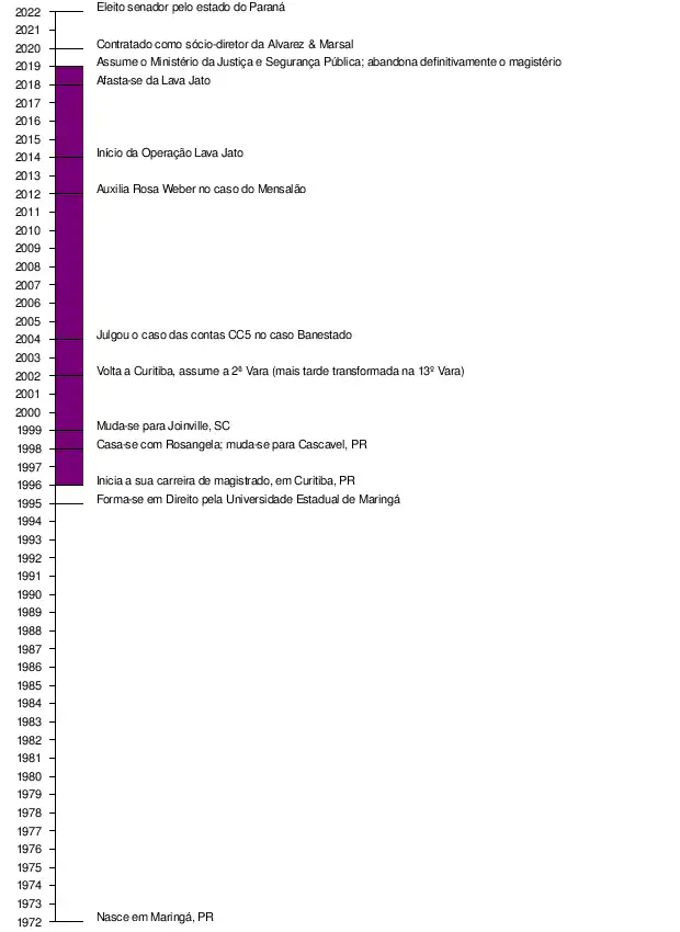 Foi juiz da 13.ª Vara Criminal Federal de Curitiba[136] até pedir exoneração da magistratura em 2018,[137][138] para assumir o Ministério da Justiça e Segurança Pública, a convite de Jair Bolsonaro. Era uma decisão irreversível — não era permitido a Moro exercer outra atividade que não a de professor e não havia a possibilidade de obter licença de seu cargo, trabalhar no governo e depois retornar. Encerraram-se assim vinte e dois anos de magistratura desde que ele fora aprovado em concurso, em 1996.[139]