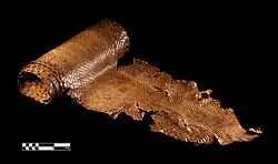 Artefato de pele de cobra em expossição no MAV/USP.