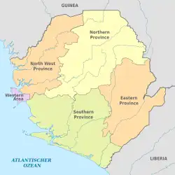- ↑ «Sierra Leone Census News: North 2.5m = 36%, East 1.6m = 23%, West 1.5m = 21%, South 1.4m = 20%» (em inglês). Uutinen väestönlaskennan 2015 lopullisista tuloksista. 23 de dezembro de 2016. Cópia arquivada em 6 de fevereiro de 2017