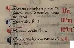 - ↑ FRANKLIM, Francisco Nunes (1816), Memoria para servir de indice dos foraes das terras do reino de Portugal e seus dominios, Academia Real das Sciencias de Lisboa, Lisboa; pag. 92 e 169(disponível aqui).