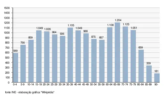 - ↑ Instituto Nacional de Estatística (Recenseamentos Gerais da População) - https://www.ine.pt/xportal/xmain?xpid=INE&xpgid=ine_publicacoes