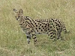 O serval (Leptailurus serval ) é um mamífero carnívoro da família dos felídeos .[ 1] Mede cerca de 85 cm, mais 40 cm de cauda. São felinos de porte médio, sendo que em seu habitat são menores do que felinos de grande porte como as panteras (leões e leopardos ) e guepardos mas maiores do que felinos de pequeno porte como os gatos selvagens africanos.