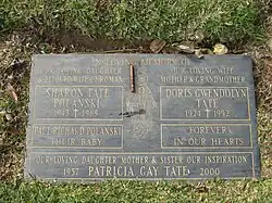 Sharon Tate foi enterrada em 13 de agosto de 1969 no Holy Cross Cemetery em Culver City, com o filho natimorto Paul Richard Polanski – assim batizado postumamente pelos pais de Roman e Sharon – em seus braços. Anos depois, sua mãe Doris e sua irmã mais nova Patti seriam enterradas no mesmo local, dividindo a mesma lápide.