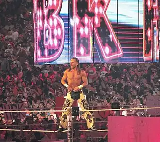 ![]() Shawn Michaels no WrestleMania XXIV em março de 2008. | |