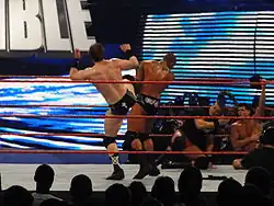 - Battering Ram (Slingshot[125] ou Top-rope shoulder block[126])