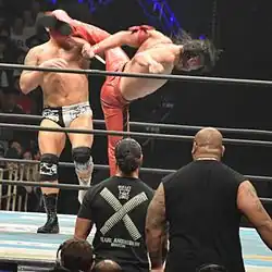 - ↑ Radican, Sean (6 de julho de 2015). «Radican's NJPW "Dominion" PPV Report 7/5: Okada vs. Styles main event, Shibata-Sakuraba, Goto-Nakamura, more». Pro Wrestling Torch. Consultado em 6 de janeiro de 2016