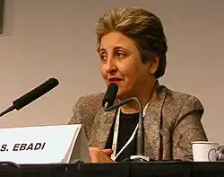 Shirin Ebadi (شیرین عبادی em persa) (Hamadã, 21 de junho de 1947) é uma advogada, ex-juíza e ativista dos direitos humanos. Em 10 de outubro de 2003, recebeu o Prêmio Nobel da Paz pelo significativo e pioneiro esforço pela democracia e direitos humanos, em especial direitos de crianças, mulheres e refugiados. Foi a primeira cidadã iraniana e a primeira mulher muçulmana a receber um Nobel.