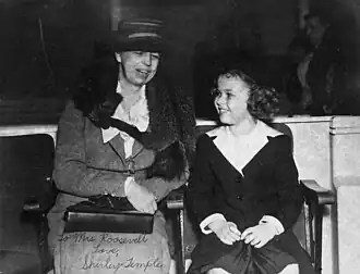 Shirley Temple Black (Santa Mônica, 23 de abril de 1928 — Woodside, 10 de fevereiro de 2014)[1][2] foi uma atriz, dançarina, cantora e diplomata norte-americana. De 1935 a 1938, Temple foi a atriz mirim de Hollywood com a maior arrecadação em bilheteria. Começou a carreira no cinema em 1932, aos três anos de idade, em uma série de curtas produzidos pela Educational Pictures. Em 1934 participou de Stand Up and Cheer! e então assinou um contrato com a Fox Film e logo fez sucesso com o filme Little Miss Marker depois, alcançou fama internacional com Bright Eyes (Olhos Encantadores), um filme projetado especificamente para ela de 1935, ela recebeu um Oscar Juvenil especial por sua contribuição excepcional como artista juvenil em filmes durante o ano de 1934. Sucessos como Curly Top (1935) e Heidi (1937) vieram ano após ano de meados até o fim da década de 1930. Temple capitalizou com mercadorias licenciadas que apresentavam sua imagem; os produtos incluíam bonecas, pratos e roupas. Sua popularidade nas bilheterias foi diminuindo conforme ela chegava à adolescência.[3] Ela apareceu em alguns filmes, de qualidade variável, de meados ao fim de sua adolescência, e se aposentou do cinema em 1950, aos 22 anos de idade.[4][5]