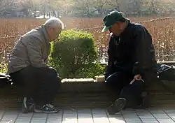 O jogador com ranque mais alto (ou mais velho) também senta em direção a porta e igualmente o que tira as peças do tabuleiro.[27]