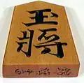 | Rei (Jogador com rating mais baixo ou desafiante) | 玉將 | gyokushō | general de joias | K | 玉 | gyoku | K | |