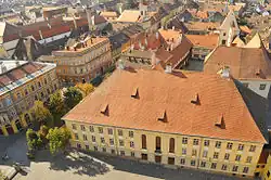 No lado ocidental da praça encontra-se o Colégio Nacional Samuel von Brukenthal, que outrora foi uma escola do século XIV.