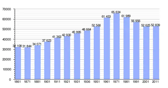 | Variação demográfica do município entre 1861 e 2011[1] |