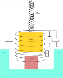 Sismógrafos utilizando este método se baseiam em um enrolamento que se move em um campo magnético. A saída do enrolamento é proporcional a velocidade relativa da massa. Este arranjo pode ser feito com tanto com o enrolamento fixo e o ímã se movendo com a massa, quanto com um ímã fixo e o enrolamento se movendo com a massa. É comum colocar um resistor no ligado ao enrolamento para amortecer o sismômetro, pois quando é induzida corrente no enrolamento, o movimento da massa sofrerá a resistência da força magnética induzida.[1] A diferença de potencial entre as pontas do enrolamento é medida através de uma eletrônica, sendo através da sua variação gerado o sismograma.