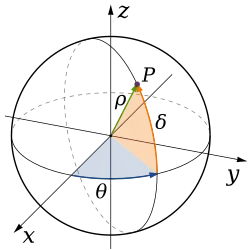 O sistema esférico de coordenadas é um sistema de referência que permite a localização de um ponto qualquer em um espaço de formato esférico através de um conjunto de três valores, chamados de coordenadas esféricas.