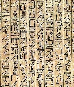 Escrita hieroglífica cursiva do Antigo Egito.