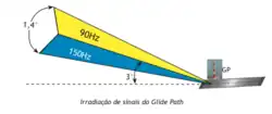 O GP opera com frequências na faixa de UHF e sua sintonia é automática, associada à frequência do Localizador (LOC).[1]