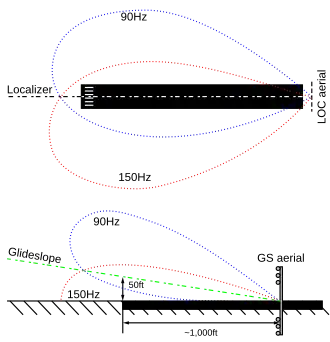 O ILS consiste, na verdade, em dois sistemas distintos: um deles mostra a orientação lateral do avião em relação à pista (localizer), e o outro mostra o ângulo de descida, ou orientação vertical (glideslope).[1]