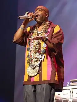 ![]() Slick Rick se apresentando em 2009 no Fresh Fest em Los Angeles, Califórnia | |