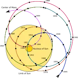 - ↑ «Sun's retrograde motion and violation of even-odd cycle rule in sunspot activity, J. Javaraiah, 2005»