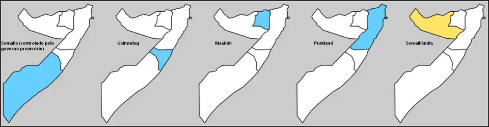 A situação política da Somália é ainda confusa. O poder político encontra-se dividido por vários senhores da guerra que dominam várias zonas do país. Com o transcorrer da guerra civil, estes foram os estados autônomos que surgiram na Somália após 1990, apenas a Somalilândia se autoproclamou independente, os outros três reivindicam autonomia dentro de uma Somália unificada.