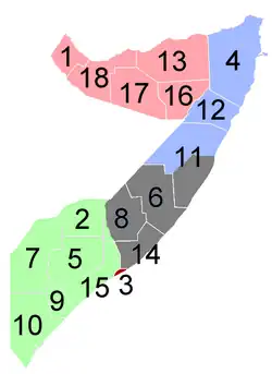 A Somália está dividida em 18 regiões (plural - gobollada, singular - gobolka):