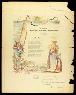 O soneto (do italiano sonetto, pequena canção ou, literalmente, pequeno som) é uma forma fixa de poema, a mais cultivada da literatura ocidental. É composto por quatorze versos, geralmente decassílabos ou dodecassílabos rimados, que podem ser divididos em dois quartetos e dois tercetos, na variante italiana, ou em três quartetos e um dístico, na variante inglesa.[nota 1] As duas primeiras estrofes (ou as três primeiras) apresentam e desenvolvem o tema do poema, e as duas últimas (ou apenas a última) o conclui de maneira arrebatadora.