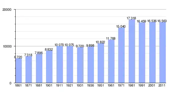 | Variação demográfica do município entre 1861 e 2011[3] |